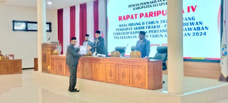 “Kita sudah mengikuti semua pandangan fraksi. Keputusan politik sudah dilakukan oleh fraksi-fraksi partai politik. Dari empat pandangan fraksi yang disampaikan, semuanya menerima, meskipun ada beberapa saran dan masukan yang menjadi perhatian eksekutif,” ujar Bupati Jayapura, Dr. Yunus Wonda, S.H., M.H menjawab pertanyaan media usai mengikuti Sidang pendapat akhir fraksi Raperda Pertanggungjawaban Pelaksanaan APBD Tahun Anggaran 2024 .