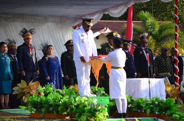 “Kita bersama harus memegang teguh dan terus mengibarkan bendera merah putih di seluruh wilayah Kabupaten Jayapura. Simbol merah putih tetap memberi semangat bagi kita dalam setiap tugas tanggung jawab dan pekerjaan, ” Pungkasnya.