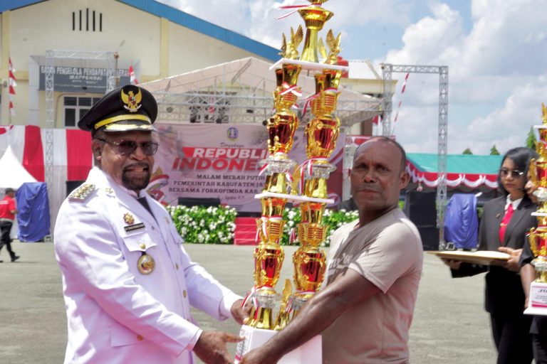 Penyerahan hadiah dilakukan usai upacara peringatan HUT RI yang berlangsung di Lapangan Apel Gunung Merah, Sentani, pada Minggu (17/08).
